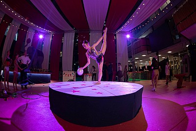 föreställa akrobater då temat på efterfesten var Cirkus. Under kvällen gick gymnasterna
