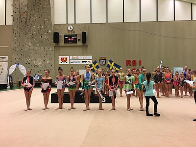 Cecilia satte alla sina kast i tunnband och fick där en fin poäng. Även Fanny, som är tillbaka i gymnastiken efter ett års uppehåll, körde ett stabilt tunnbandsprogram och domarna var imponerade av hennes fina linjer.