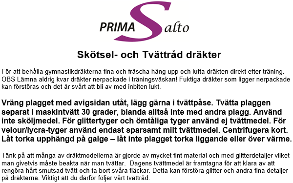 Dräkter beställs via Prima Saltos hemsida, där ni kan hitta SGSFs föreningssortiment. Det finns en rabattkod "1517" som ger er 7 % rabatt.